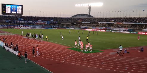 ⇒中断前の甲府戦と同様、試合開始時からの4バック。4−4−2っぽいが、サンデー選手がワントップで豊川選手がやや下がって