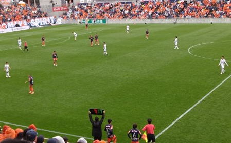 ・前半に3点を奪ったものの、後半は両チームとも決定機をなかなかつかめない。そんな中、この試合1番観客がわくシーンが、後半