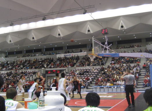 勝負自体は上記のところで決着がついたと言えるが、どうして昨日と同じく、離され始めるとくらいついていけないのだろうか? 昨日は、一回くらいついた(3Q中盤に37−38で一度逆転する。しかしこの後10点連続でとられる・・・)が、今日はその気配・気迫・雰囲気も感じ取られず、ずるずる大差での敗戦。大阪さんは4Qになるとメンバーを落として戦ってました。